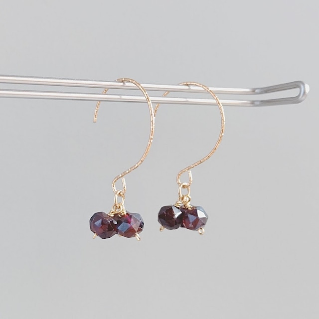 デザイン性のあるピアス金具を採用したシンプルなピアス。 ひと粒が5-6mmあるガーネットを3粒使ったので、シンプルながらボリューム感があります。 少しクラフト感のあるラフなカットであたたかみを感じます。 1月の誕生石として知られるガーネット。 ガーネットの深い赤色は力強さとエネルギーを感じさせますね。 ゴールドカラーの組み合わせは華やかでお顔まわりも明るくなります。 【おもな材料】 ・ガーネット/ボタンカット約5-6mm ・サージカルステンレスデザインピアス 【サイズ】 ・全長約3.0cm(ピアス金具含む) Instagram → https://www.instagram.com/usair0/ usairo