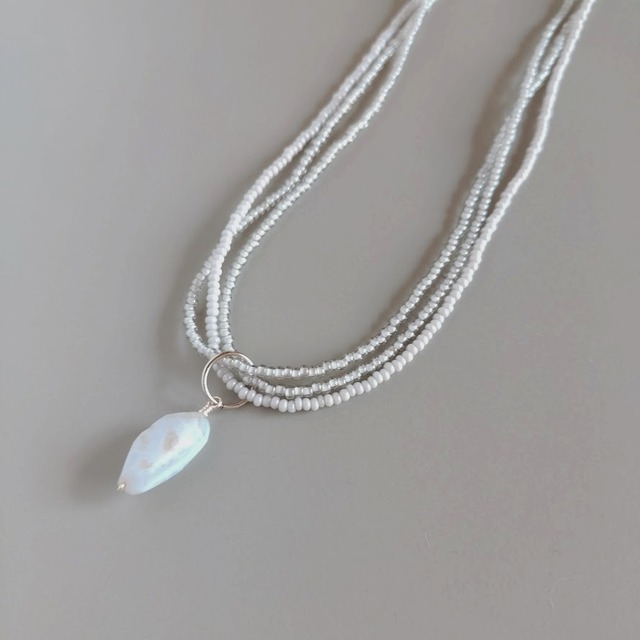 ソフトグレーシードビーズネックレス/ブルーレースアゲート