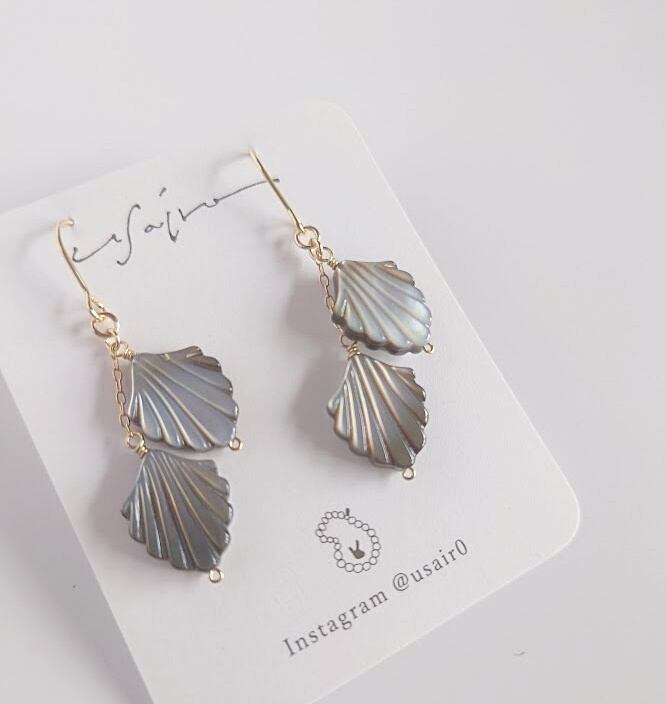 1枚のシェルをチェーンでバランスをとりながら配置する事で2枚が少しだけ重なるようなデザインにいたしました。