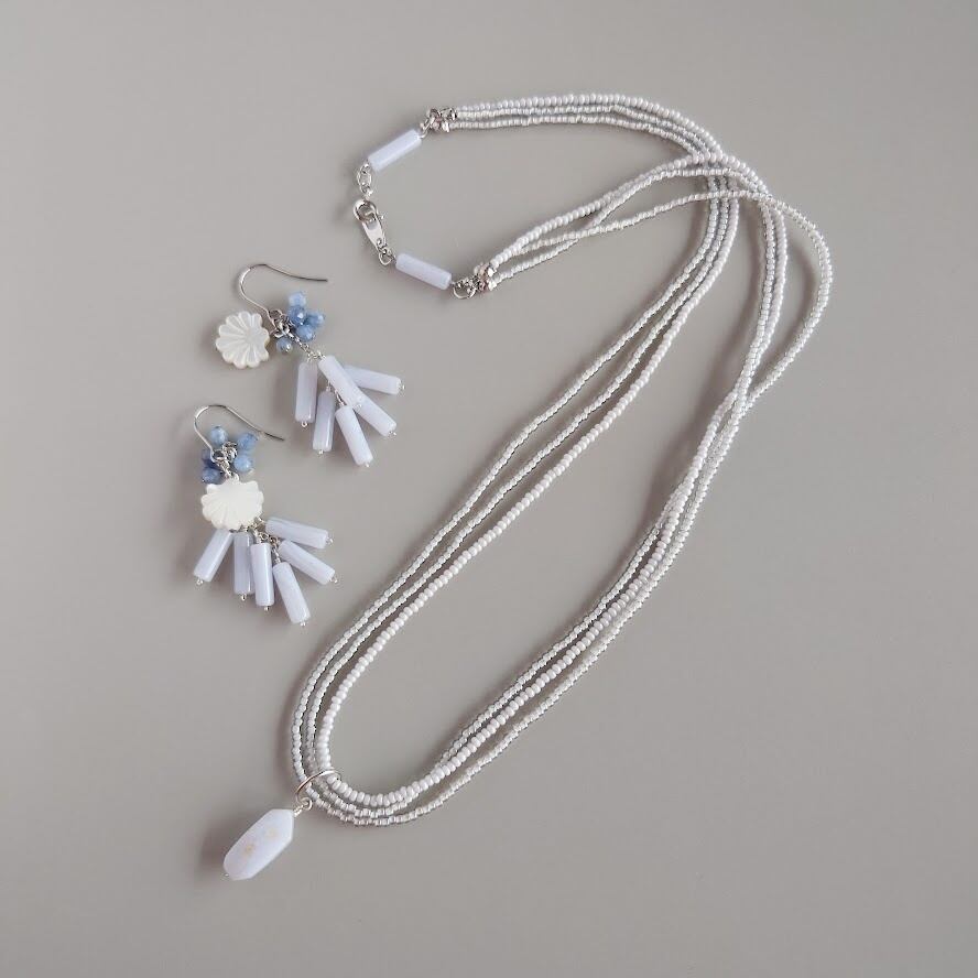 ソフトグレーシードビーズネックレス/ブルーレースアゲート