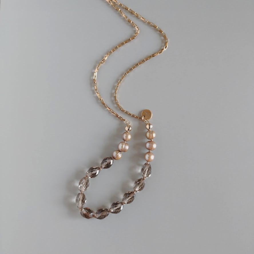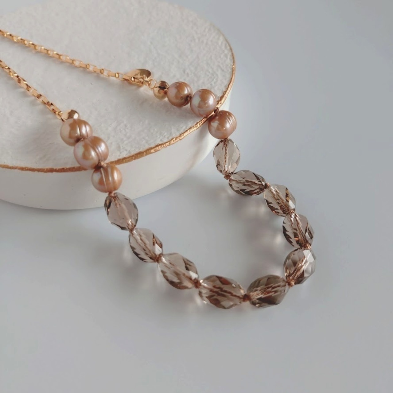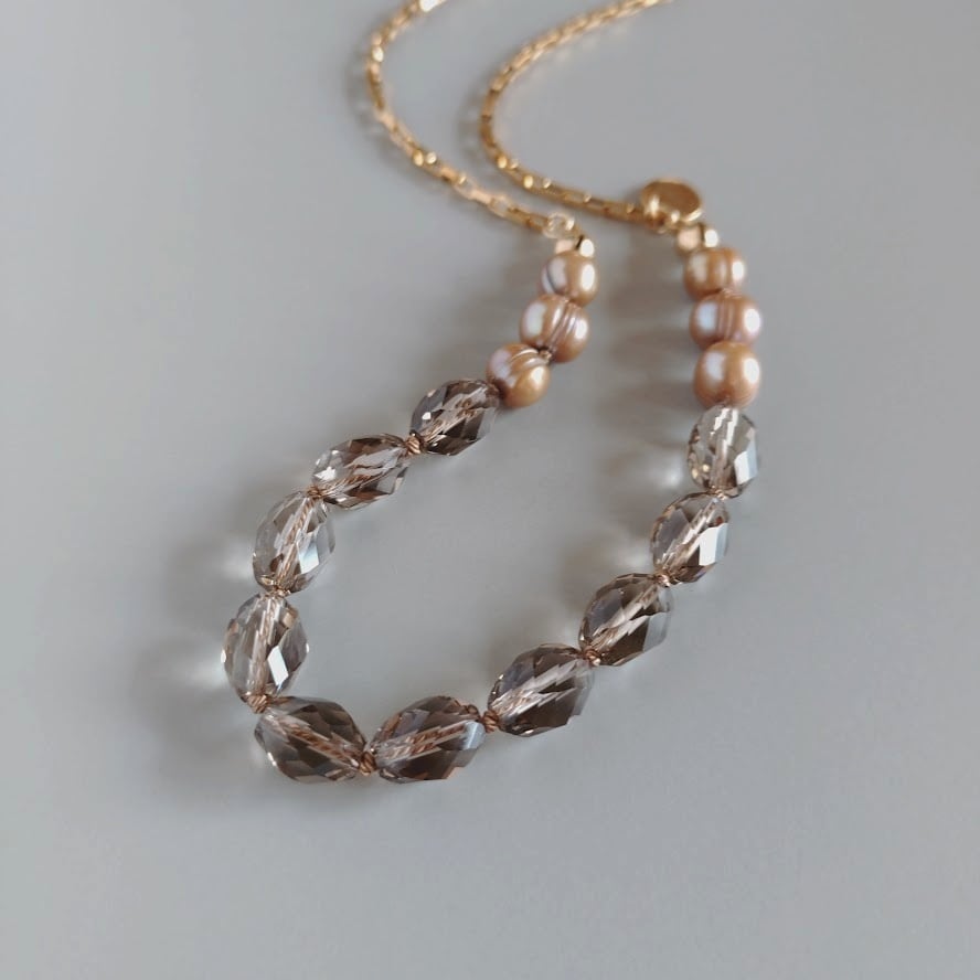 ゴールドブラウン系の淡水パールとの相性もバッチリです。