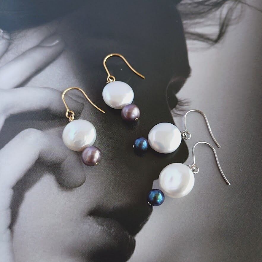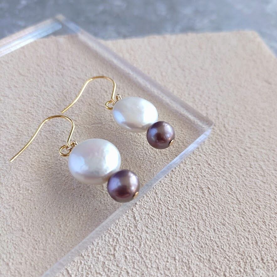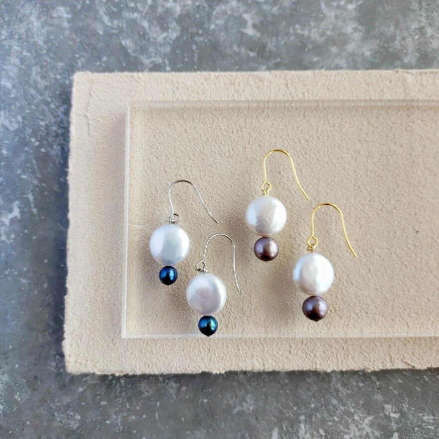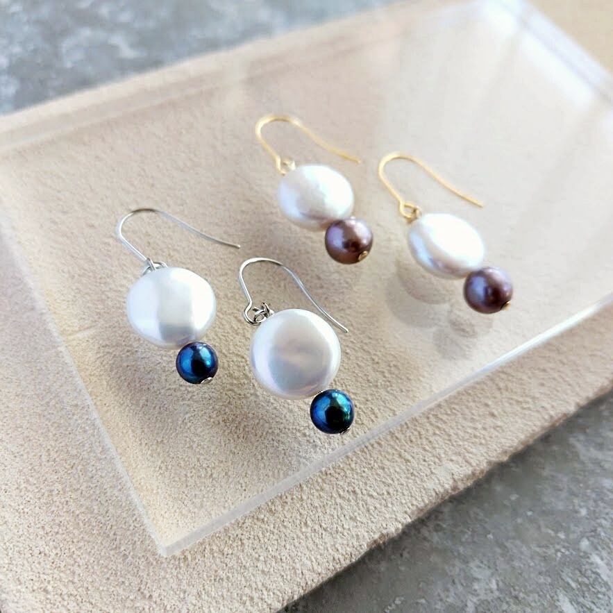 上質なコインパールピアス/バイカラー