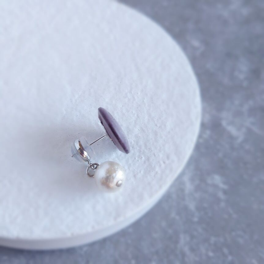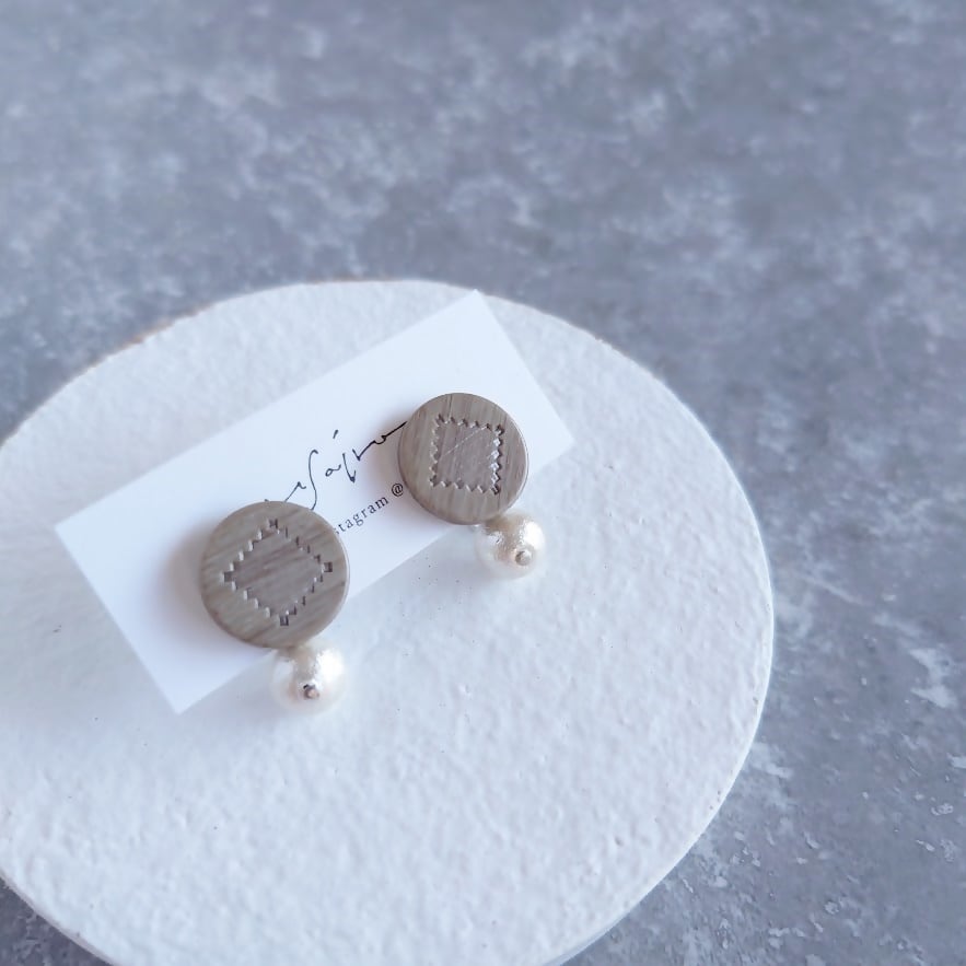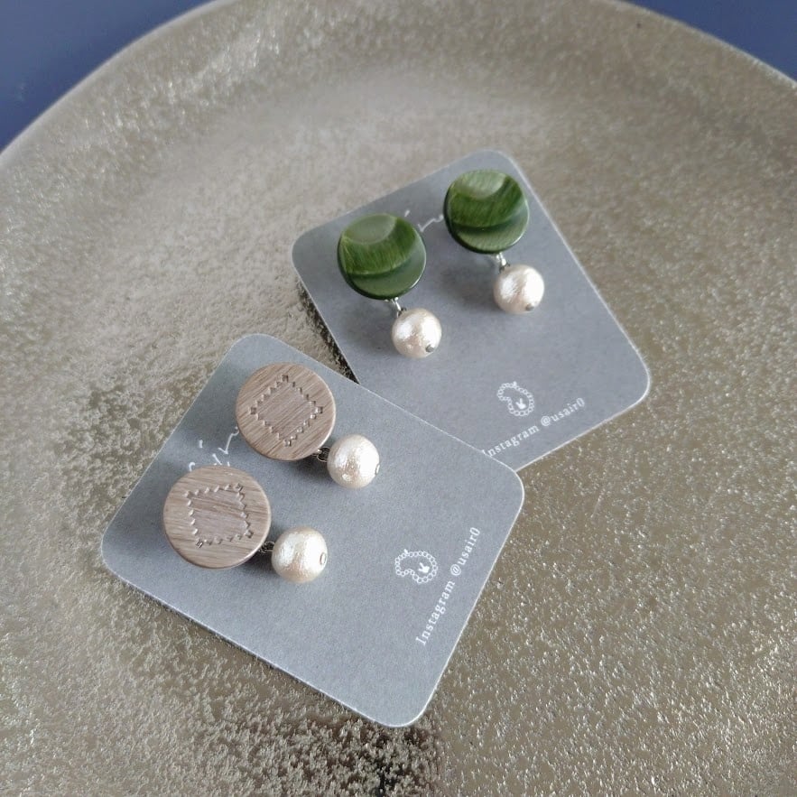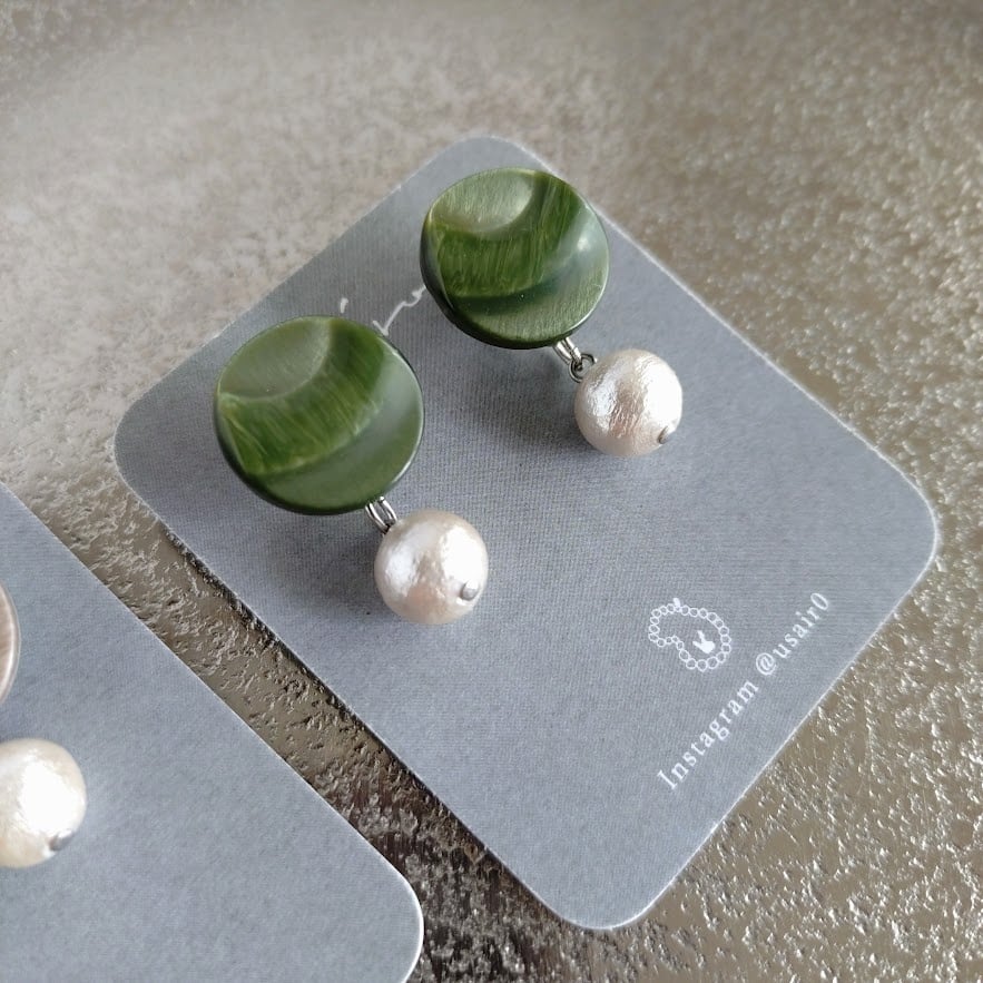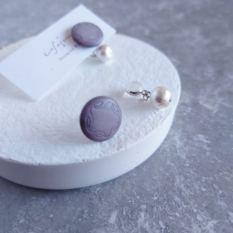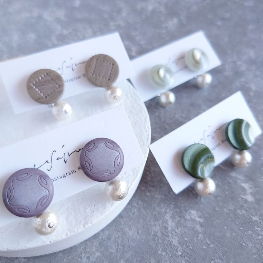 国産ヴィンテージボタンで作ったピアス/コットンパールのバックキャッチ付き