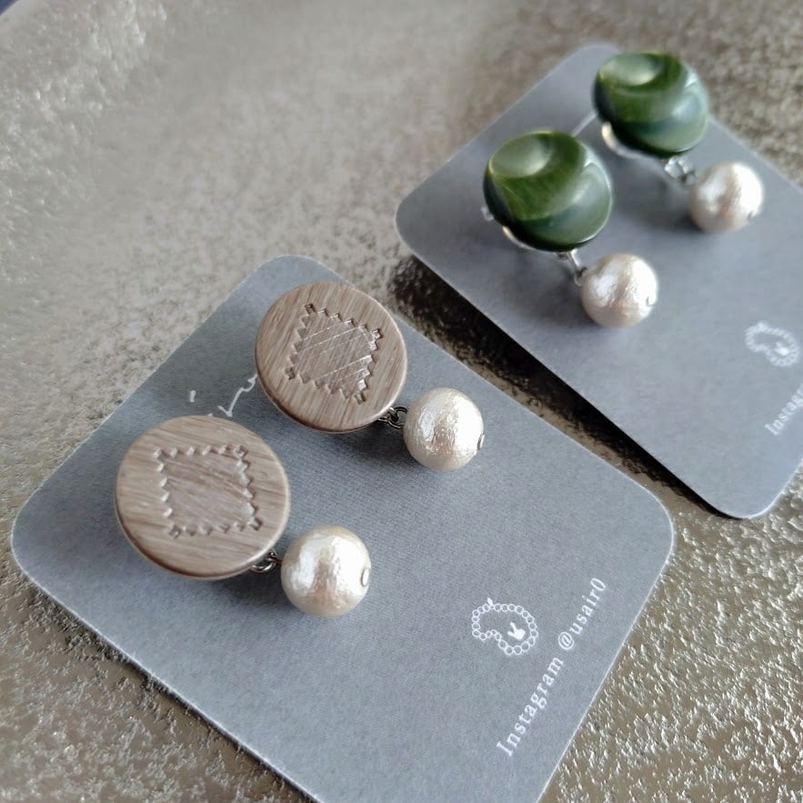 それぞれ、ホワイトのコットンパールのバックキャッチ付きです。