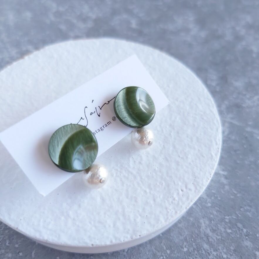 日本製の古いヴィンテージボタンを使ったピアスです。