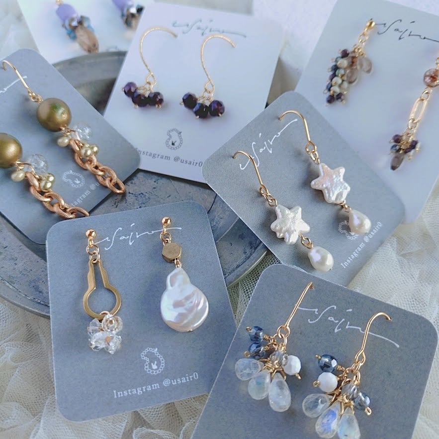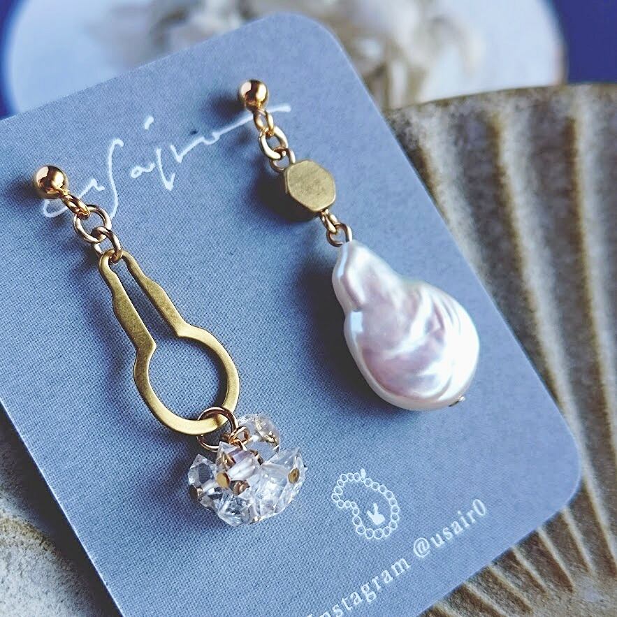 清楚な印象のある水晶やパールも真鍮素材のパーツと合わせるとデイリー使いしやすいかと思いますよ♪