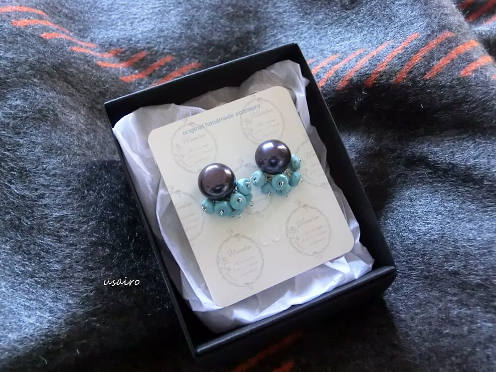 大人の女性にピーコックカラーのヒトツブピアス+マグネサイトターコイズを添えて。