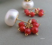 ヒトツブ湖水真珠ピアス×赤珊瑚