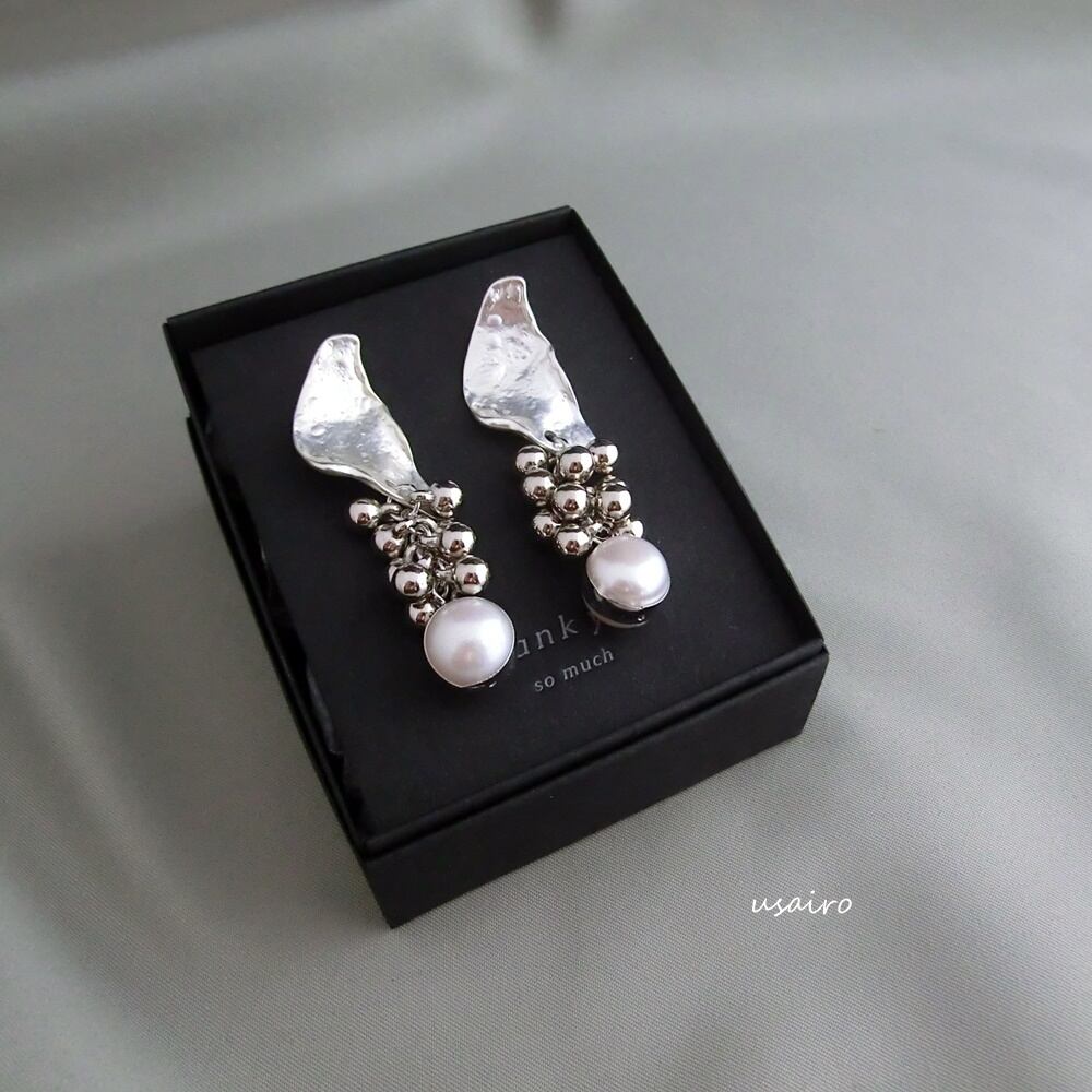 パールを甘過ぎないデザインで、それでも上品さを忘れないようにと仕上げたピアスです。
