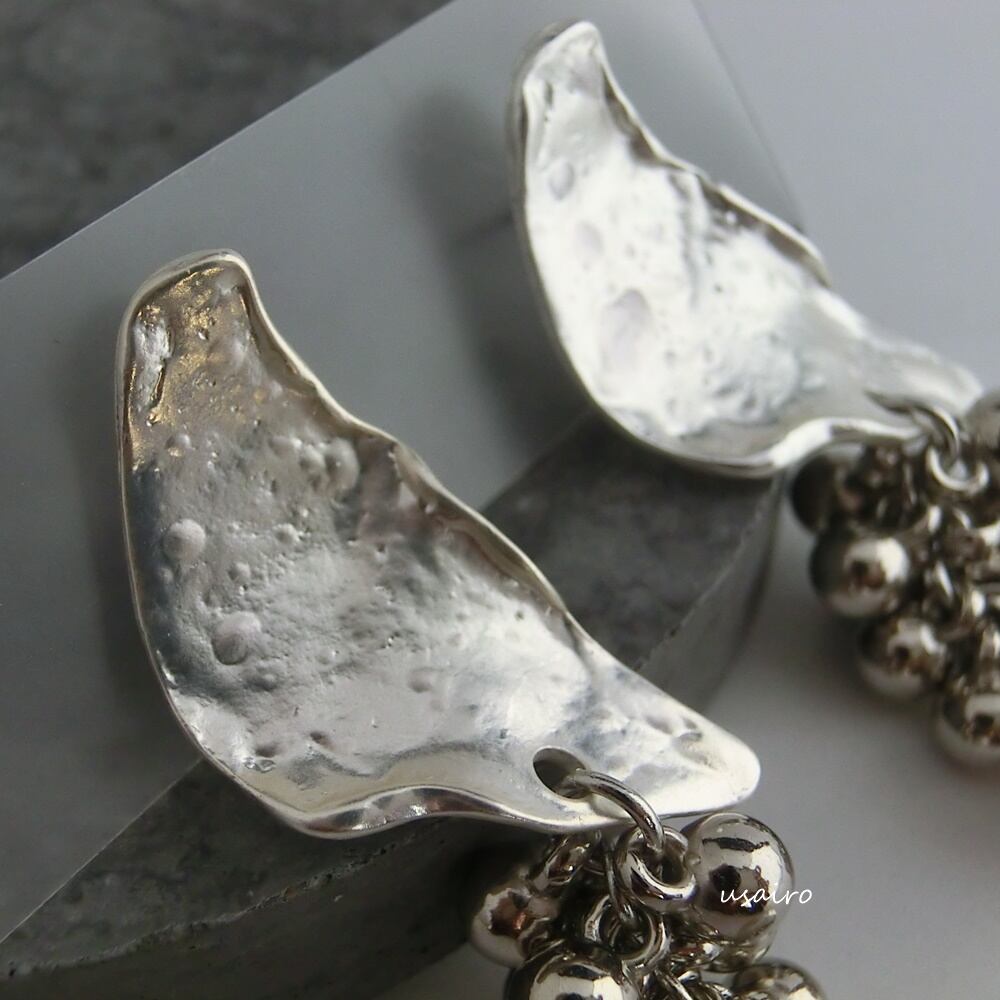 ヒラっと三角にちぎったアルミのようなフォルムのデザインポストピアス。