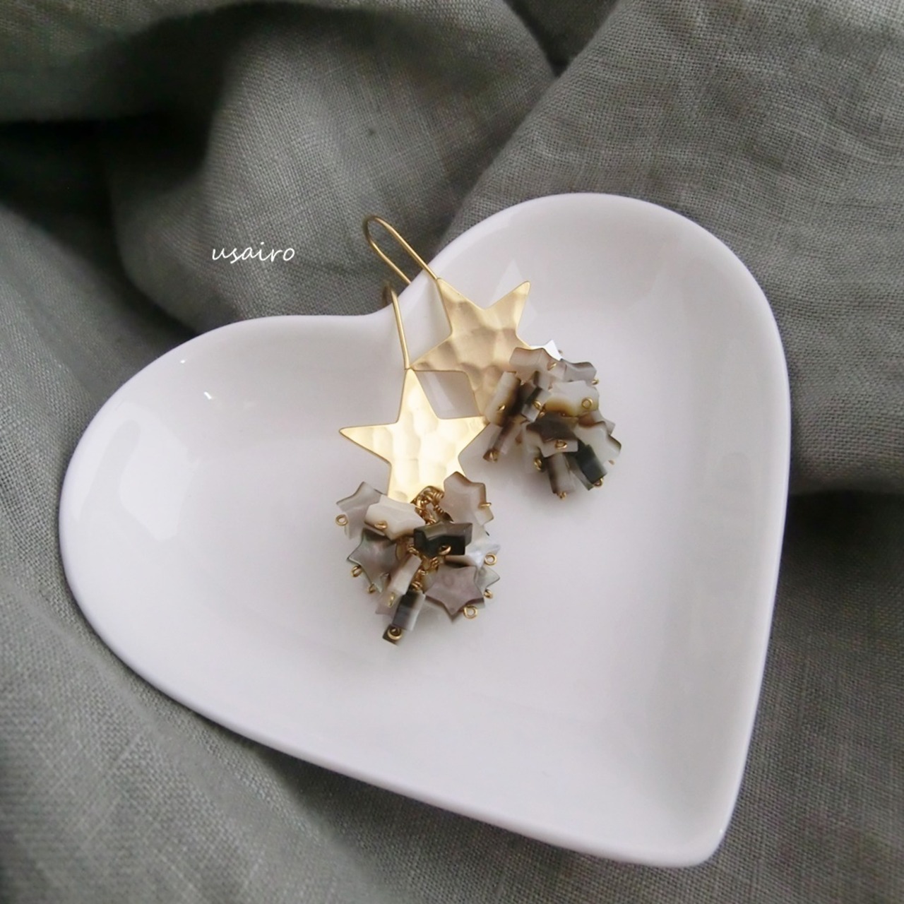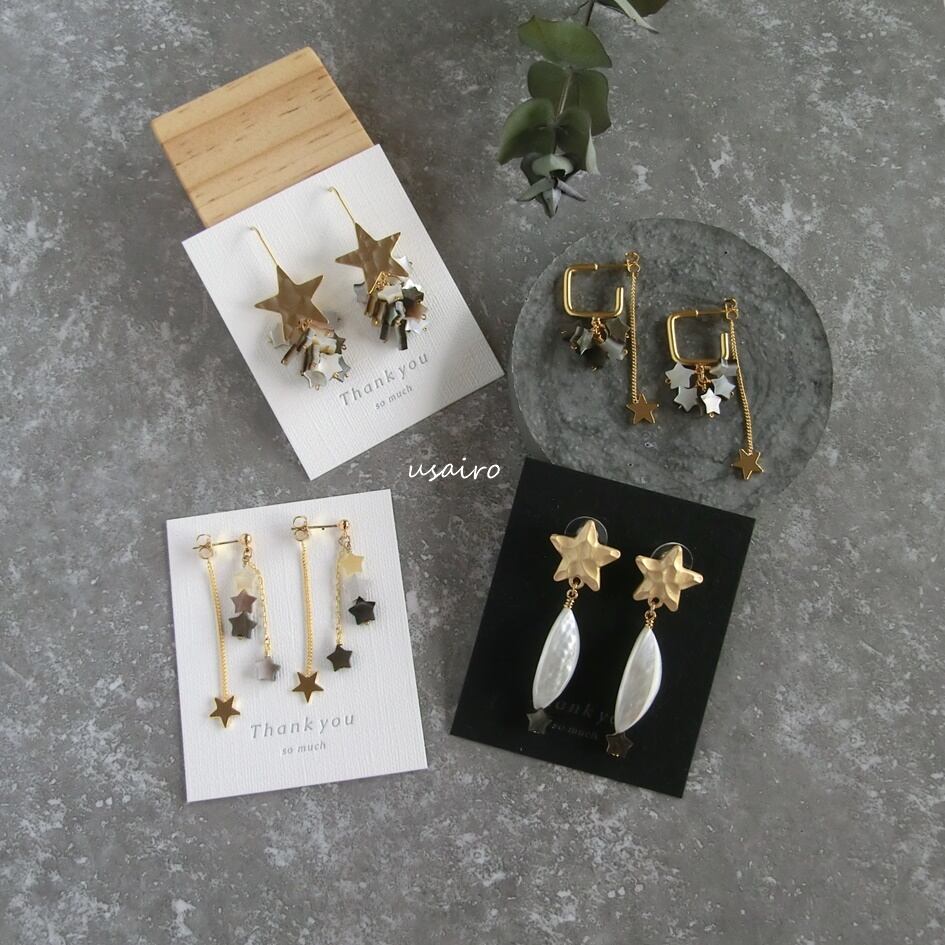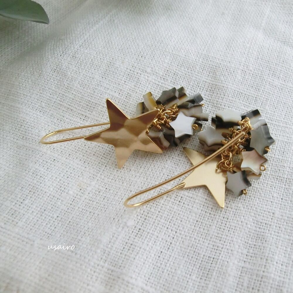 ・星のデザインピアス/真鍮に16KGP/約20mm