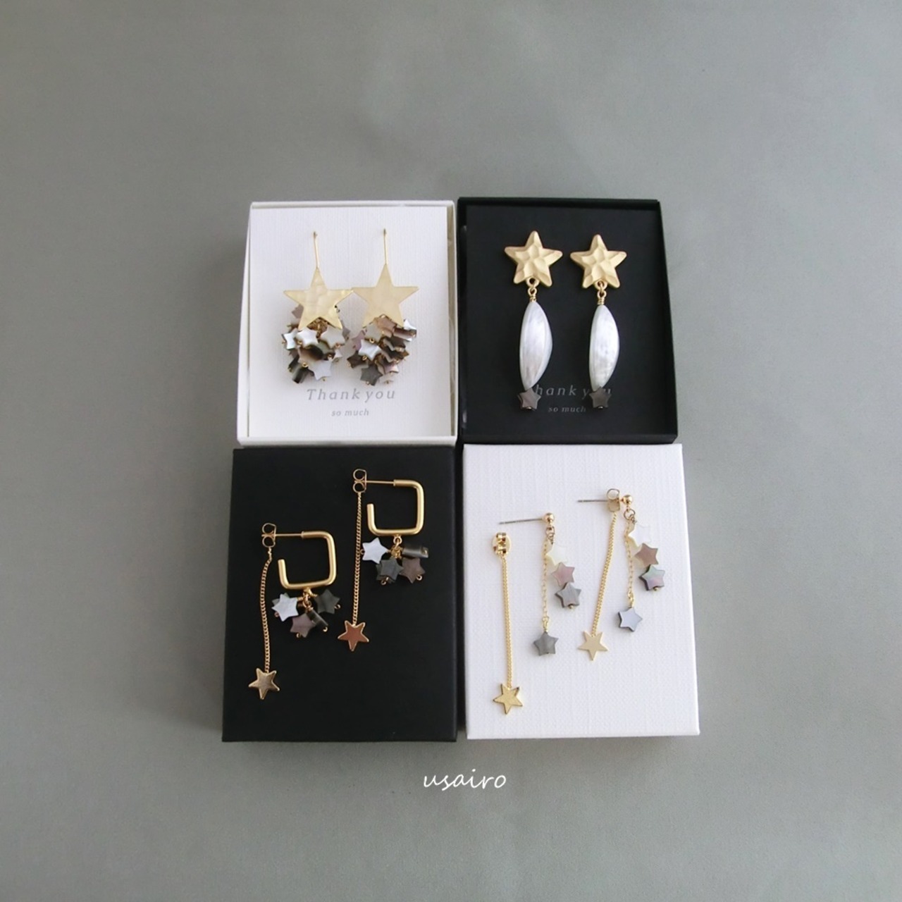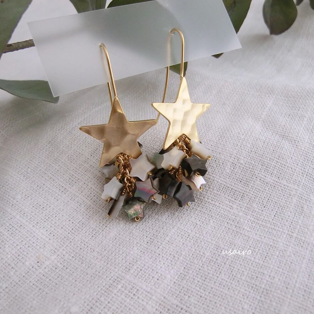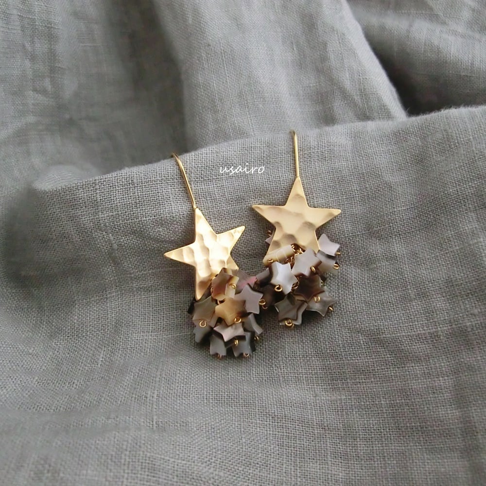 その下にマザーオブパール黒蝶貝のお星様をたっぷり、た~っぷり付けました。