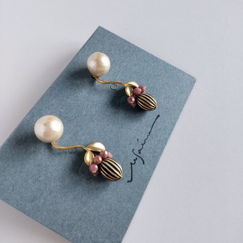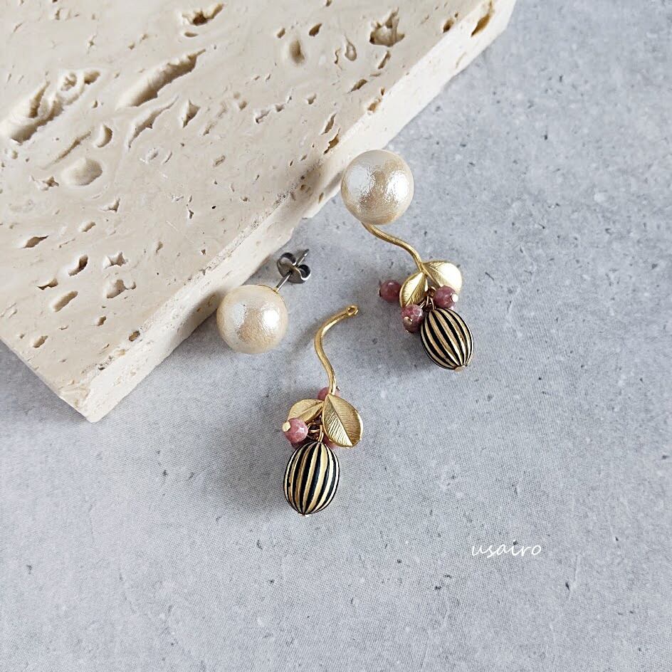 シンプルな一粒パールとして、またセットされたチャームを合わせて表情を変えて使ったりとお楽しみ下さい♪