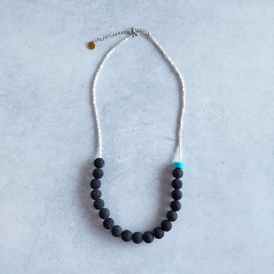 ターコイズがアクセント☆ラヴァストーンデザインネックレス
