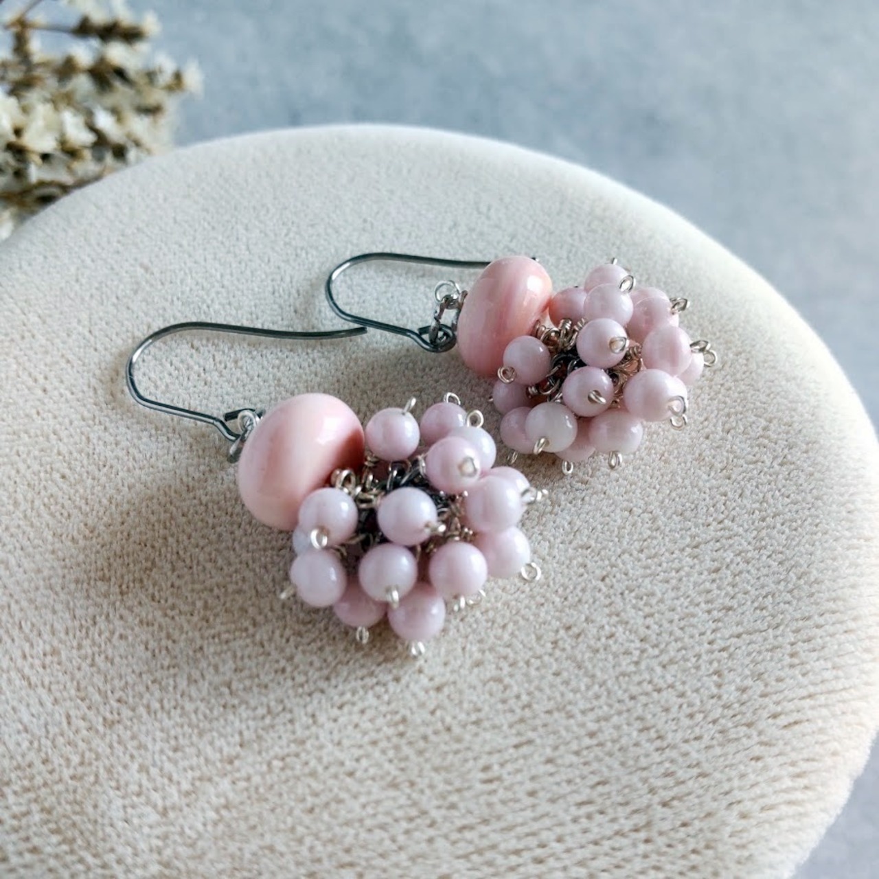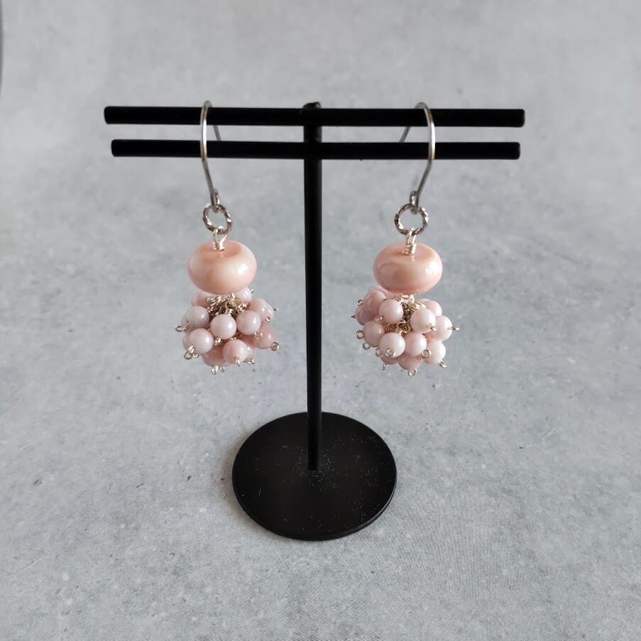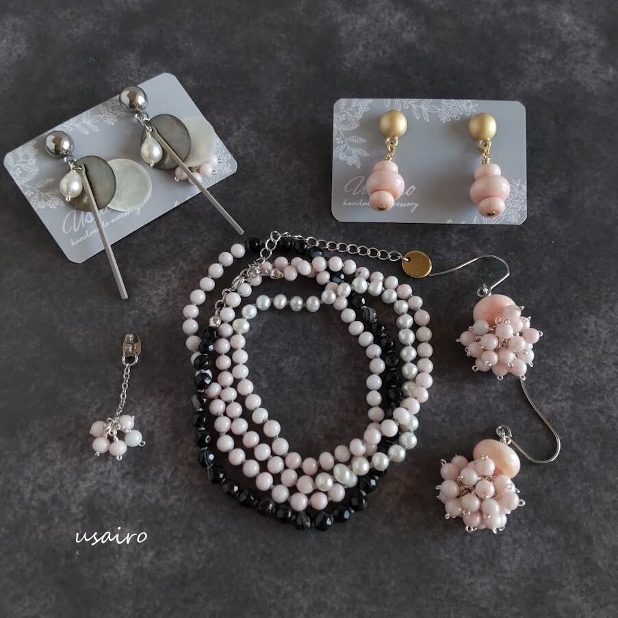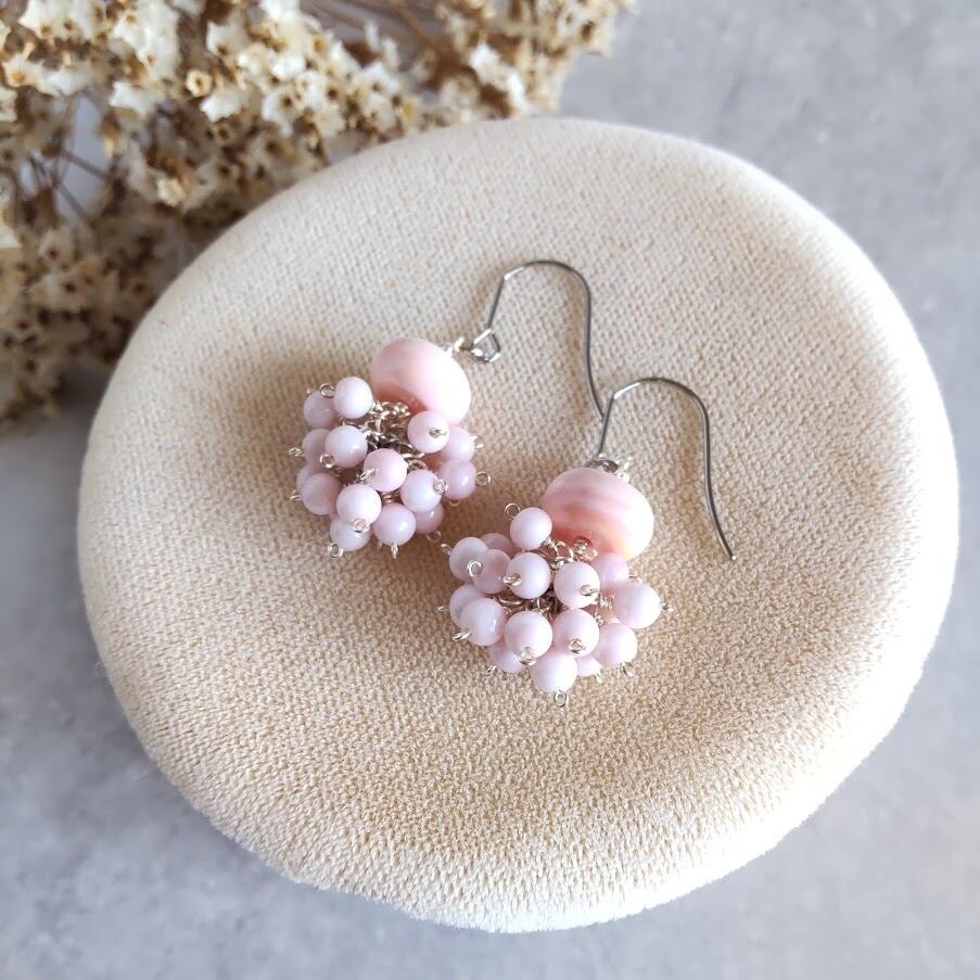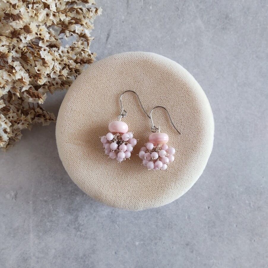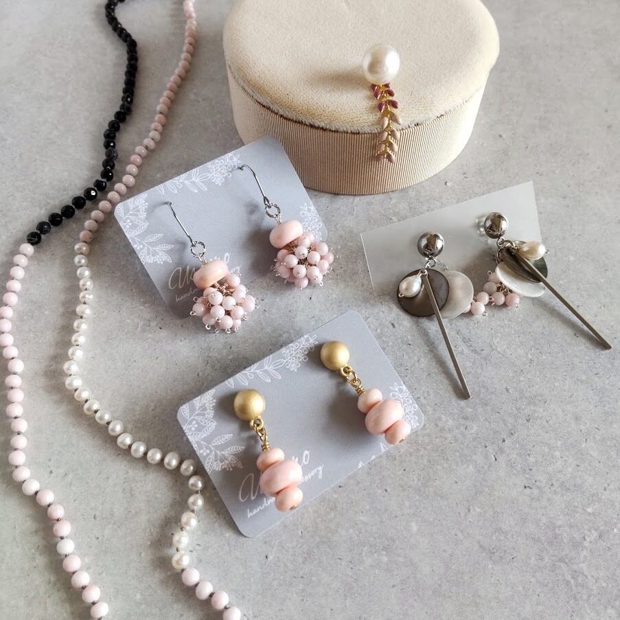 春は大人のピンクで心ふわり♪をテーマにしてお作りした新作ピアスです。