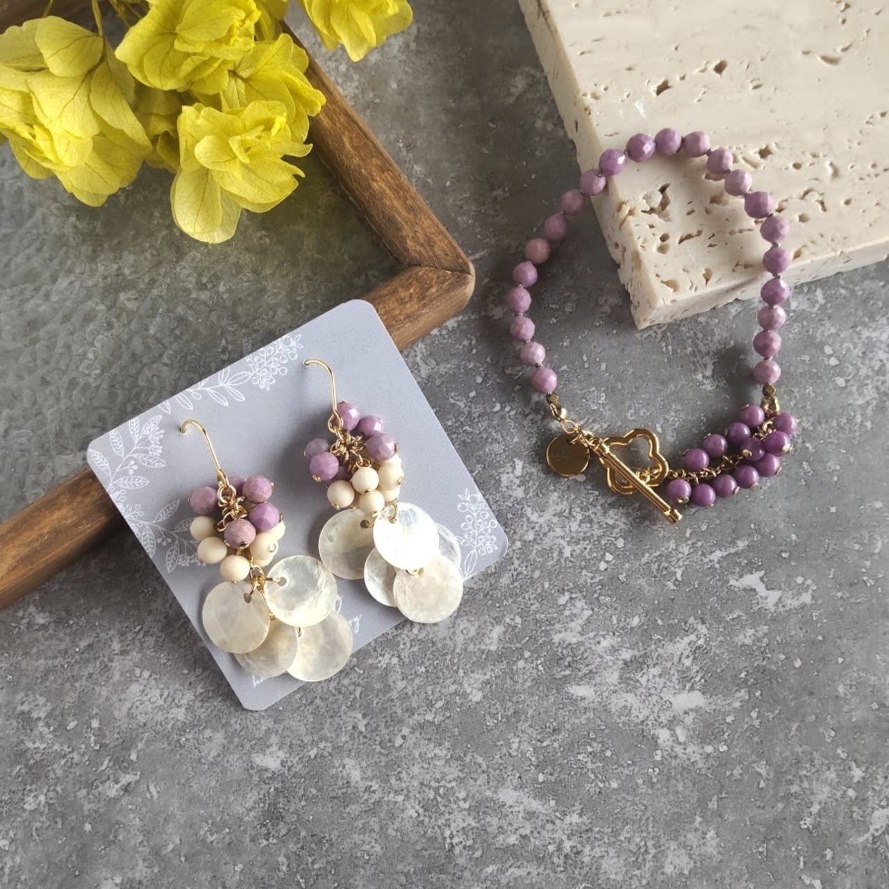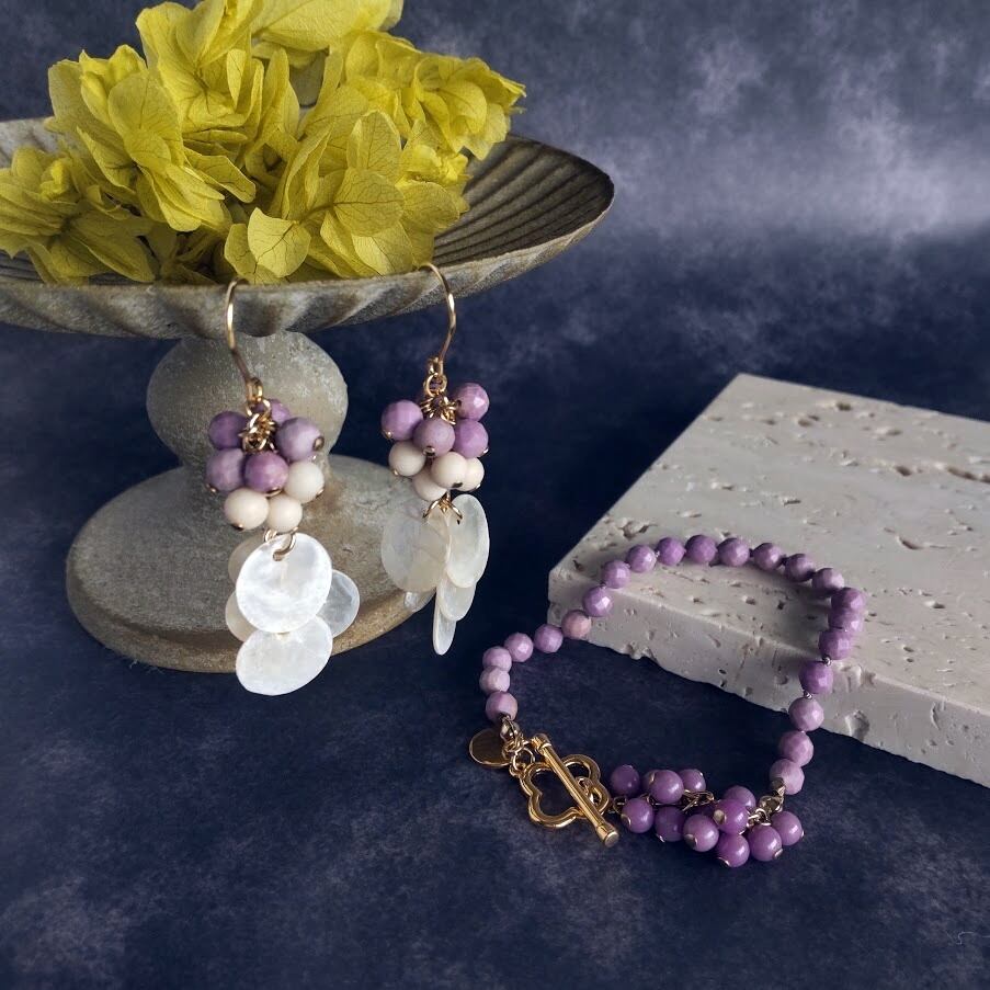パープルストーンのフォスフォシデライトとリバーストーンのバイカラー仕立て。