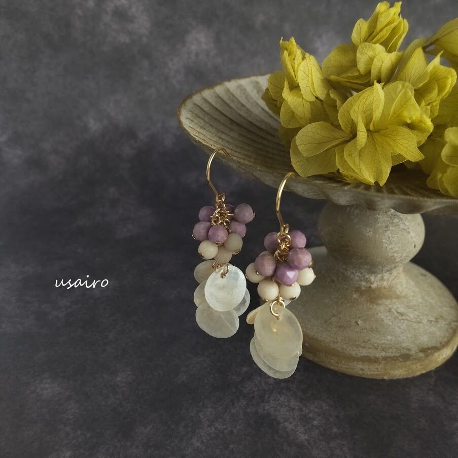 ★SALE★フォスフォシデライト×シェルしゃらしゃらピアス