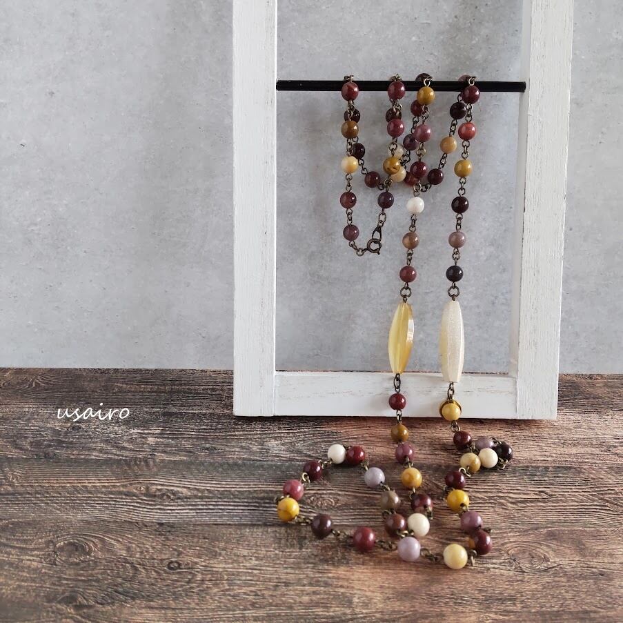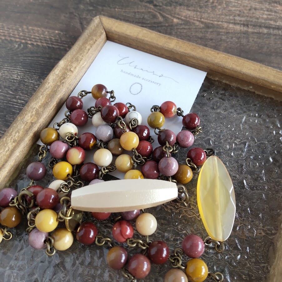 モッカイト(ムーアカイト)の6mm丸玉でロングネックレスをお作り致しました。