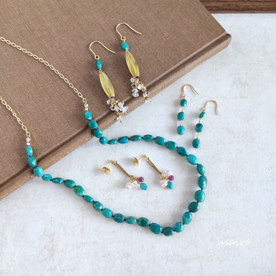 他にもクリソコラを使用した耳飾りやネックレスをご用意しています。