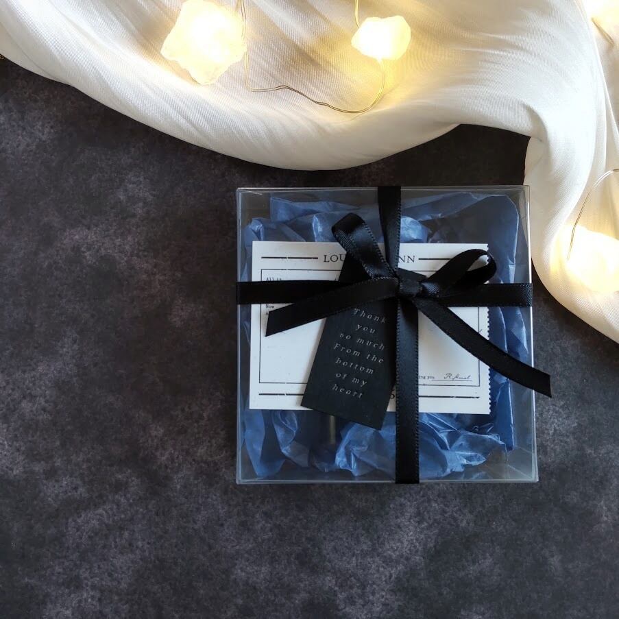 クリアボックスにブルー×ブラックをイメージしてお届けする予定です。