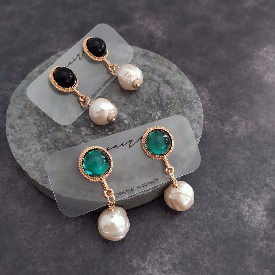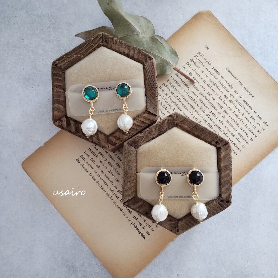 ジャパンヴィンテージパールクラシカルピアス/グリーン
