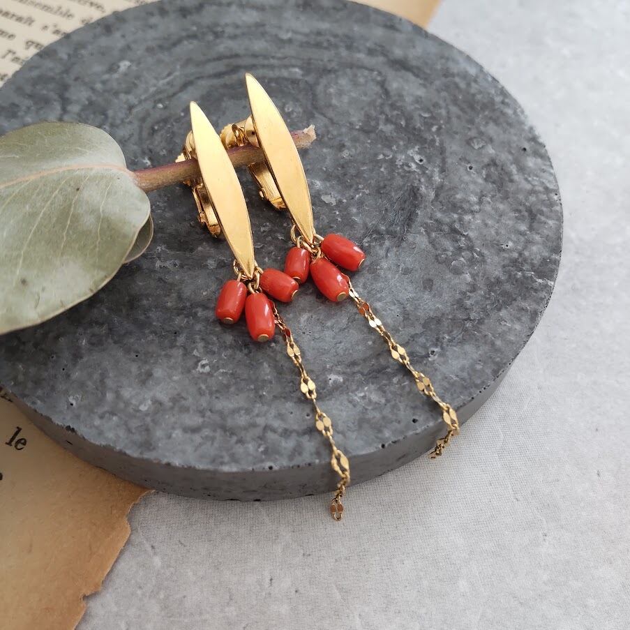 サルデーニャ珊瑚のスリムデザインイヤリグ