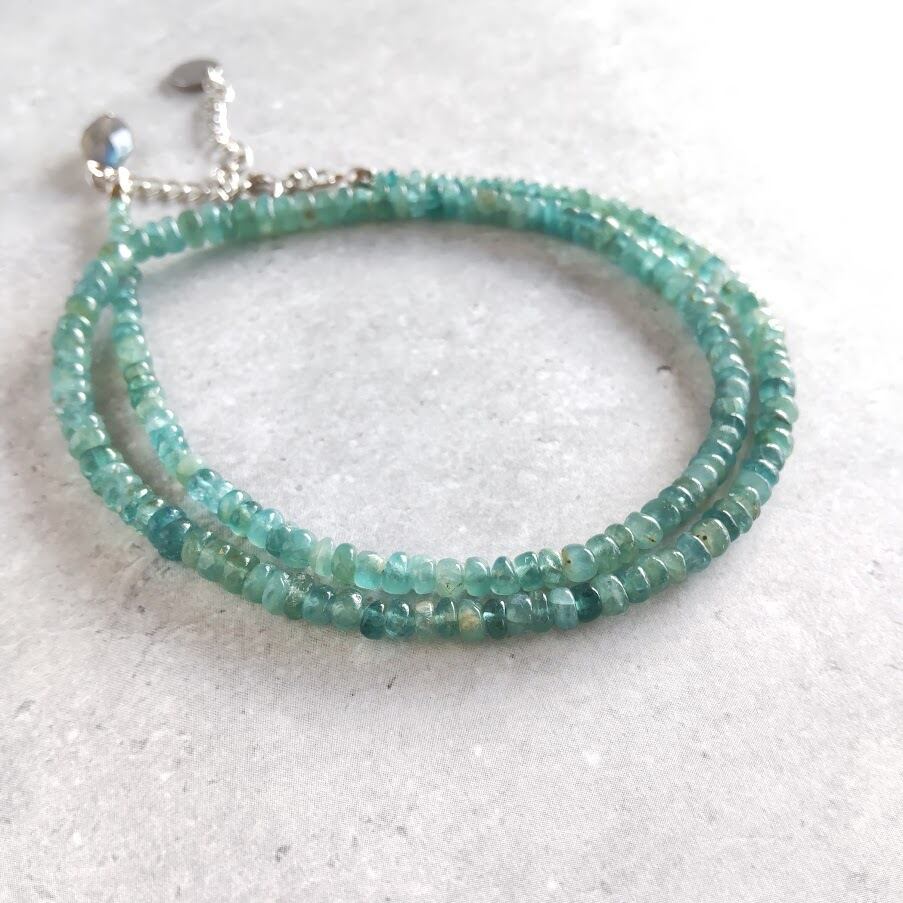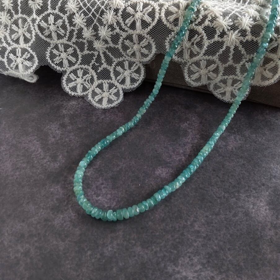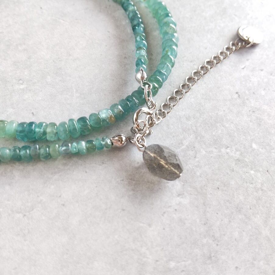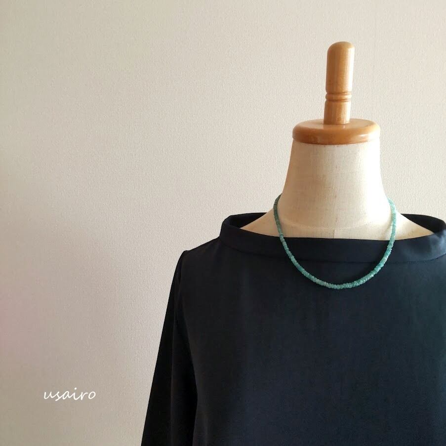 青緑色の濃淡が爽やかな印象のネックレス。