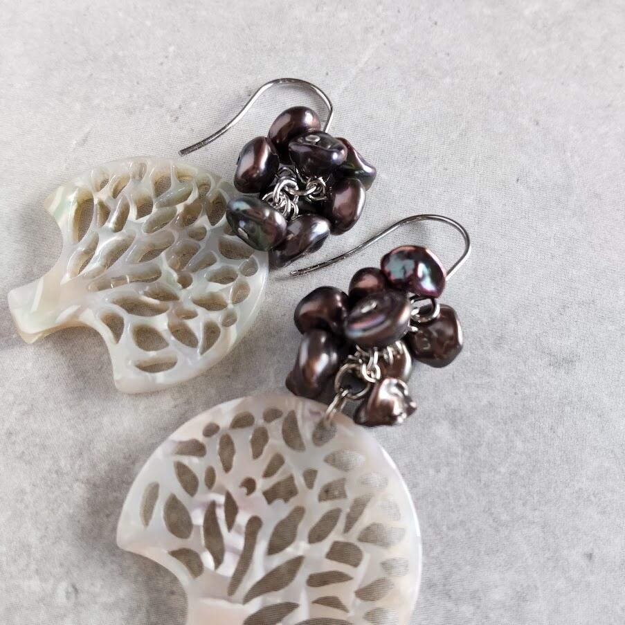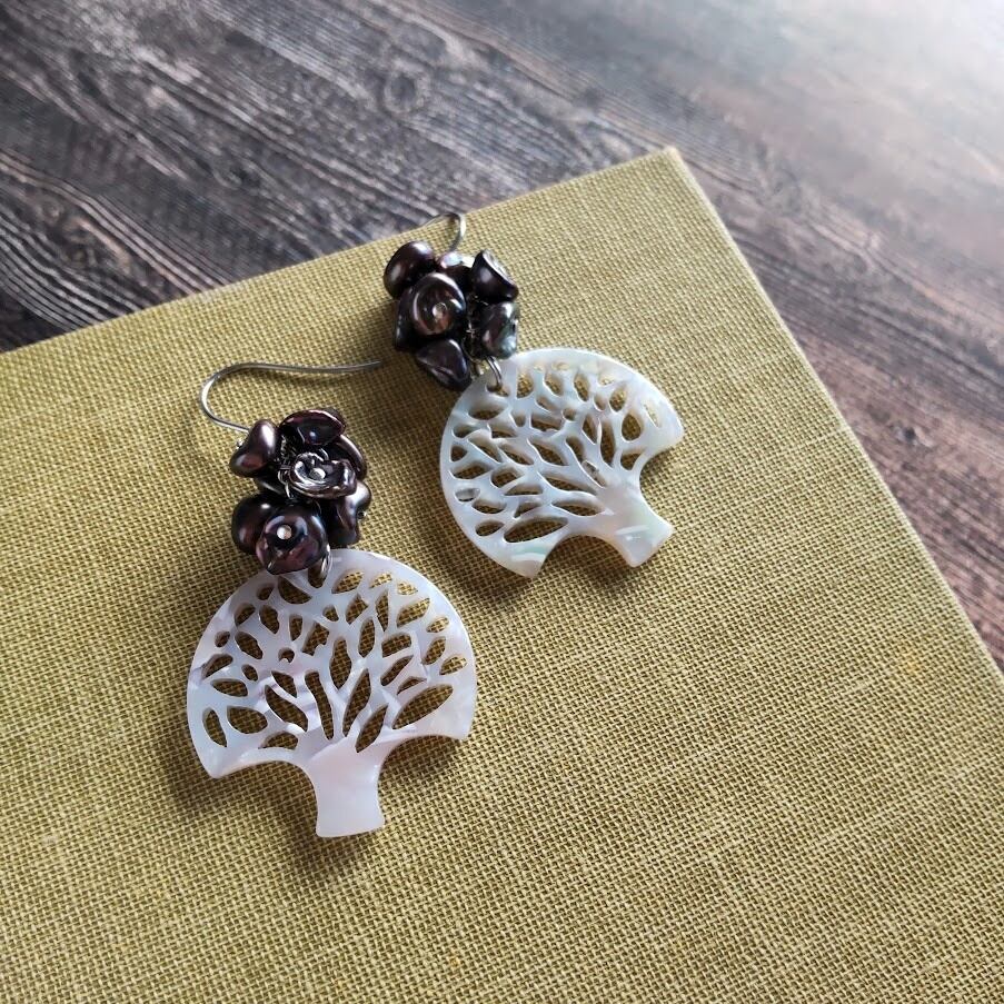 その透かしツリーチャームと個性的な淡水パールを合わせてピアスにしました。