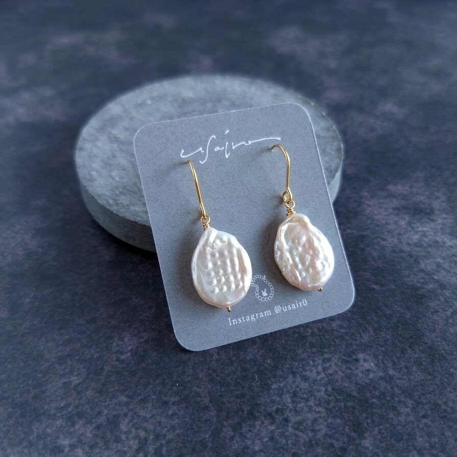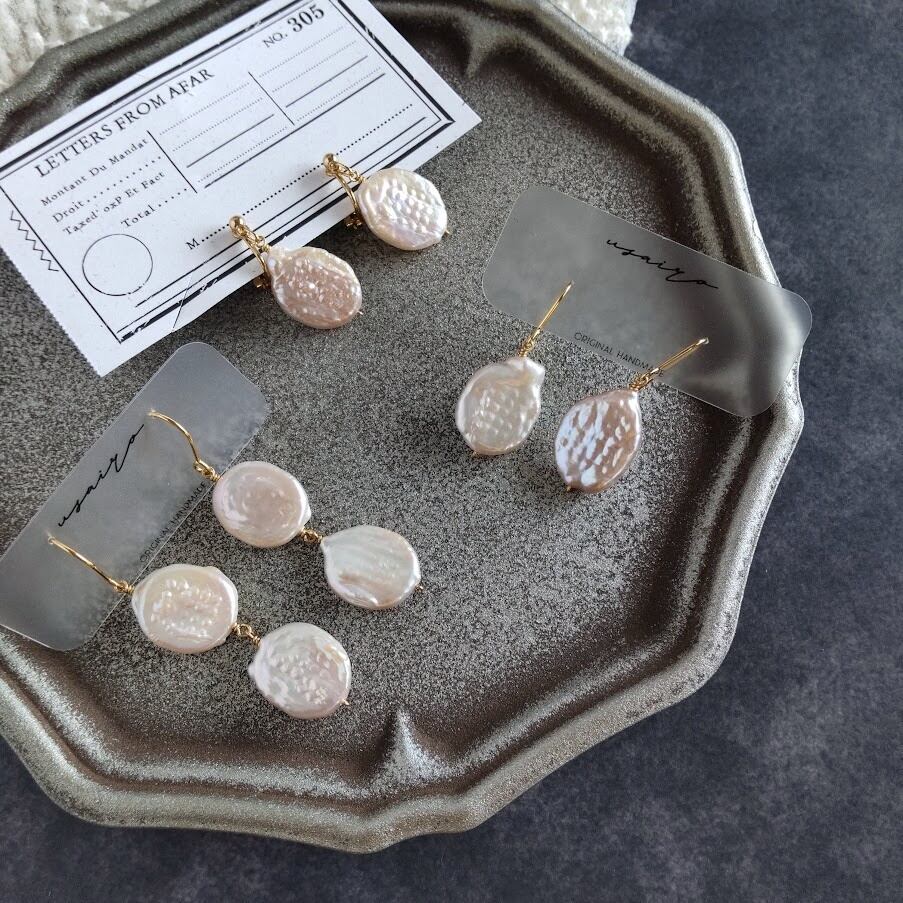 淡水パールピアス/薄焼き煎餅S
