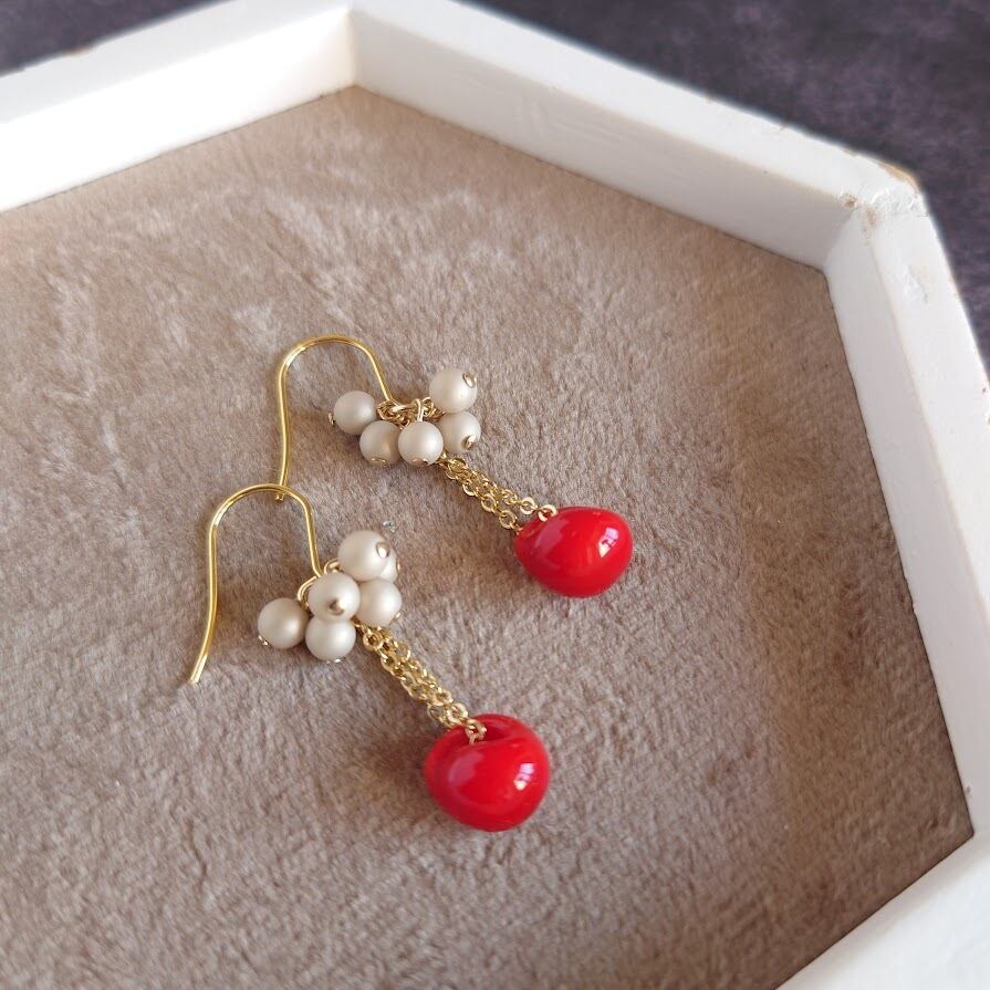 ティアドロップガラスビーズ E/レッド×モカ