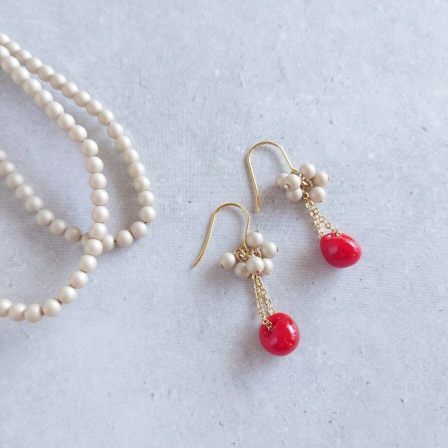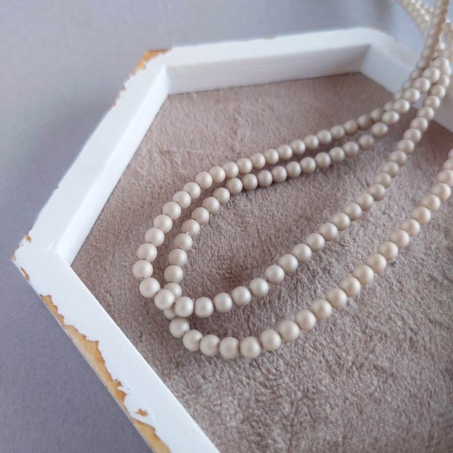 日本製のマットでシルキーなモカカラーのパールビーズと合わせたら、ふんわり優しい印象に♪