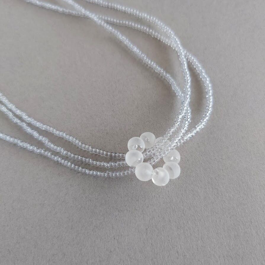 ライトグレーの3連ビーズネックレス/フロストドーナツ付き