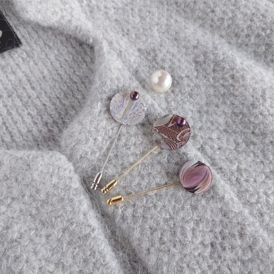 ●グレー+ブラウン系マーブル →ピン金具はゴールド