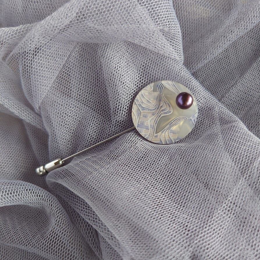 ハットピン/マーブル模様プレートに淡水真珠がひと粒